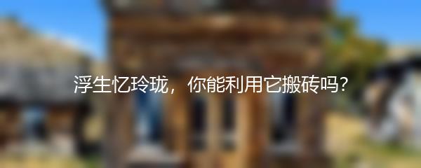 以上就是小编为大家带来的“浮生忆玲珑,你能利用它搬砖吗?”的攻略文章。希望对你在游戏中利用角色搬砖有所帮助,祝你在浮生忆玲珑的世界中玩得开心!