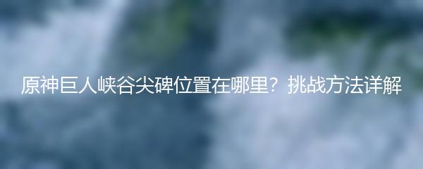 在原神游戏中,巨人峡谷是一个神秘而危险的地方。巨人峡谷尖碑是玩家经常要找到的一个地点,但是它的具体位置在哪里呢?该如何挑战这个尖碑呢?接下来,我们将为大家详细介绍。