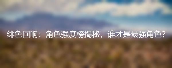 以上就是绯色回响的角色强度榜,每个角色都有其独特的优势和特点。在游戏中选择合适的角色,合理搭配编队,将会带给玩家无尽的乐趣和刺激。快来挑战绯色回响的世界吧!