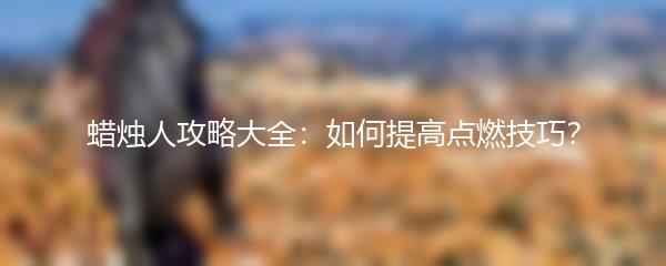 蜡烛人是一款非常有趣的游戏,玩家需要在黑暗的环境中将蜡烛点燃,以增加光照并探索未知的世界。想要更好地玩转蜡烛人游戏,提高点燃技巧是至关重要的。下面是一些提高点燃技巧的攻略,希望对大家有所帮助: