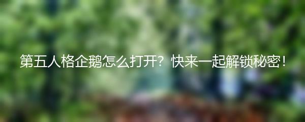 第五人格是一款非常受欢迎的多人在线游戏,而在游戏中有一个神秘的企鹅可以带来很多的乐趣和惊喜。那么,你知道如何打开第五人格中的企鹅吗?快来和我一起解锁这个秘密吧!