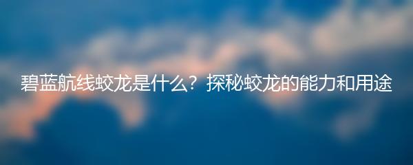 碧蓝航线蛟龙是游戏碧蓝航线中的一艘人气角色舰船。那么,蛟龙是什么,她的能力和用途又是怎样的呢?下面,就让我们来一起探秘吧!