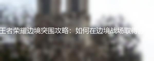 以上就是小编为大家带来的王者荣耀边境突围攻略:如何在边境战场取得胜利?希望这些攻略能够对你有所帮助,祝你在游戏中取得好成绩!
