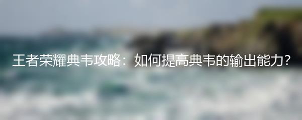 以上就是小编为大家带来的王者荣耀典韦攻略:如何提高典韦的输出能力?希望对玩家们有所帮助,快来尝试一下吧!