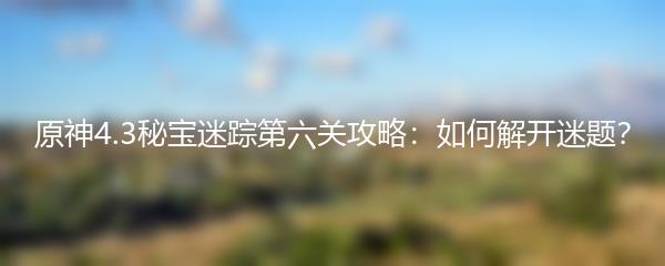 以上就是小编为大家带来的原神4.3秘宝迷踪第六关攻略。希望这篇攻略对您有所帮助,祝您顺利通过第六关,继续探索更多的秘宝!