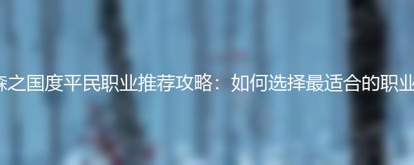 以上就是小编为大家带来的《森之国度平民职业推荐攻略:如何选择最适合的职业?》。希望这篇攻略可以帮助你在森之国度中做出明智的职业选择,享受游戏的乐趣!