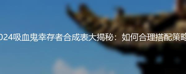 吸血鬼幸存者合成表是玩家提升游戏实力的必备工具。通过研究合成表,我们可以了解幸存者之间的相克关系,合理搭配幸存者,提升游戏技巧。希望本篇攻略对各位玩家有所帮助!以上就是小编为大家带来的2024吸血鬼幸存者合成表攻略。
