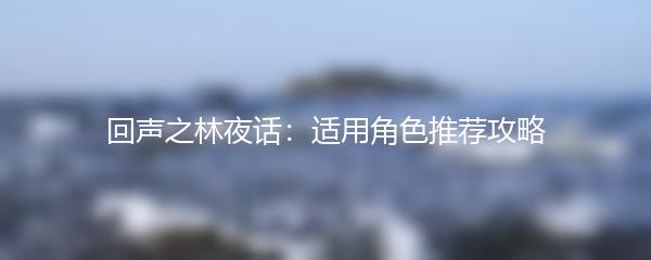 以上就是小编为大家带来的回声之林夜话适用角色推荐攻略。选择合适的角色可以极大地提升你在夜话中的战斗实力。希望这些推荐能对你的游戏体验有所帮助,祝你在回声之林夜话中取得胜利!