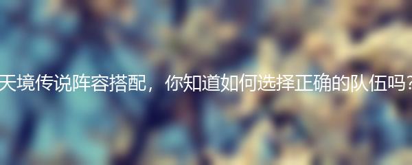 以上就是小编为大家带来的“天境传说阵容搭配,你知道如何选择正确的队伍吗?”的攻略。希望能对大家有所帮助!