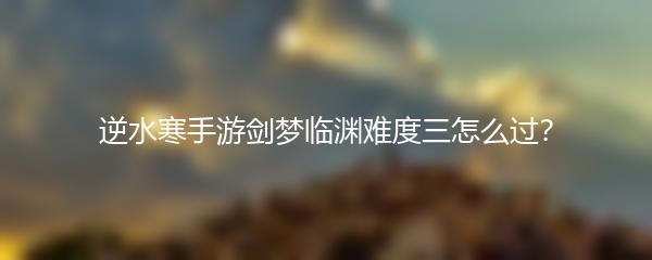 以上就是小编为大家带来的“逆水寒手游剑梦临渊难度三怎么过”的攻略。希望这些方法能够帮助到你,在游戏中取得更好的成绩。
