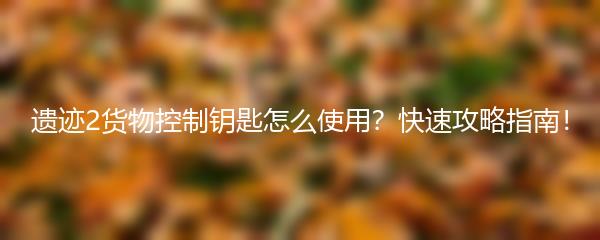 遗迹2是一款受欢迎的冒险游戏,其中有许多有趣的谜题和任务需要解决。货物控制钥匙是一个重要的物品,它能帮助玩家调控游戏中的货物。那么,你知道如何正确使用货物控制钥匙吗?本攻略将为您提供详细的指导,让您轻松应对游戏中的挑战。