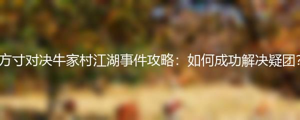 方寸对决牛家村江湖事件是近期令人关注的谜团之一。如果你也对这个故事感兴趣,那么本篇攻略将为你揭开其中的秘密。在接下来的内容中,我们将为你详细介绍如何成功解决这个疑团。