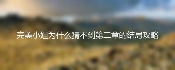 完美小姐是一个有着无穷魅力的女性,但她为什么总是猜不到第二章的结局呢?下面我们将为您提供一些攻略,帮助您解答这个问题。