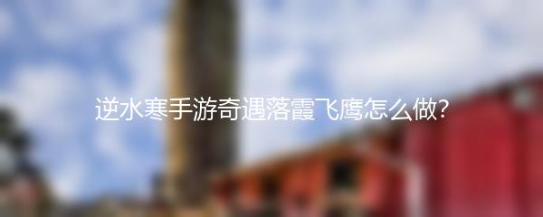 以上就是小编为大家带来的逆水寒手游奇遇落霞飞鹰怎么做的攻略。希望能对大家有所帮助,祝愿大家在游戏中取得好成绩!
