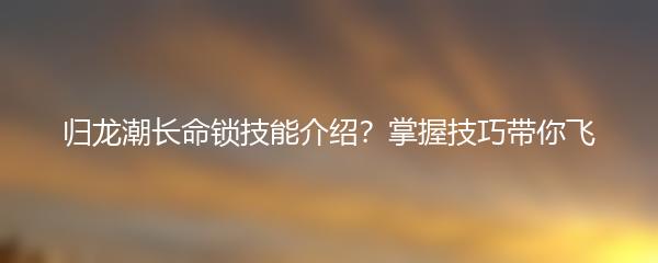 以上就是小编为大家带来的归龙潮长命锁技能介绍,相信通过学习和实践,你一定能够成为一名强大的玩家!快来尝试吧!