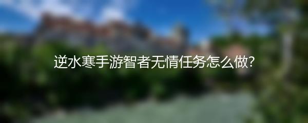 以上就是小编为大家带来的逆水寒手游智者无情任务的攻略。希望这些建议能帮助到玩家们顺利完成这个挑战,获得更多的游戏乐趣和成就感!