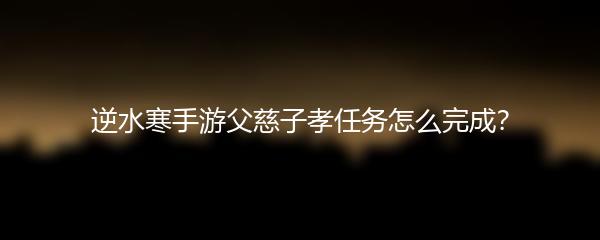 以上就是小编为大家带来的逆水寒手游父慈子孝任务攻略。希望通过以上的攻略和提示,能够帮助你顺利完成这个有趣的任务,获得丰厚的奖励!快来挑战吧!