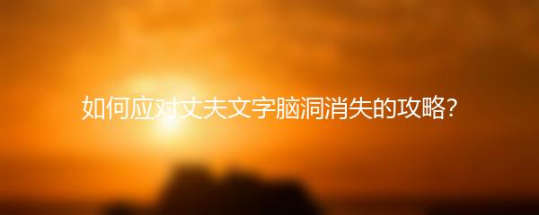 以上就是小编为大家带来的“如何应对丈夫文字脑洞消失的攻略”的形式。希望对大家有所帮助!