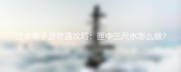 以下是一些建议,可以帮助玩家更好地完成匣中三尺水任务: