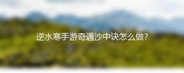 逆水寒手游奇遇沙中诀怎么做?攻略指南