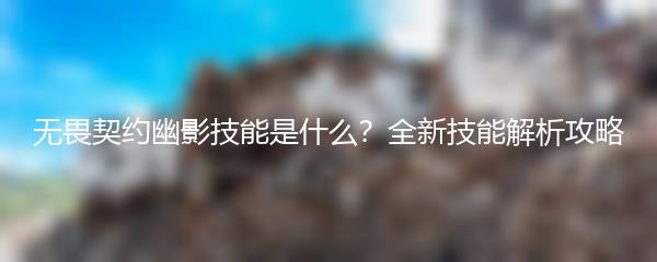 无畏契约幽影是一款热门的在线游戏,其中幽影是游戏中一种特殊的技能。那么,你知道无畏契约幽影技能是什么吗?下面就来详细解析这项全新技能。