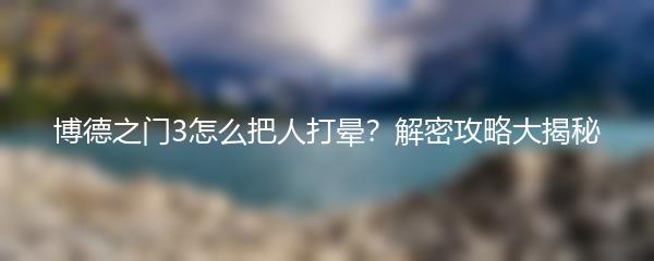 以上就是小编为大家带来的《博德之门3怎么把人打晕?解密攻略大揭秘》的内容。希望这些技巧能够帮助到各位玩家,使你们在游戏中能够更加顺利地打晕敌人,取得战斗的胜利!加油!