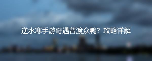以上就是逆水寒手游奇遇普渡众鸭的攻略,希望对大家有所帮助。在完成这个任务的过程中,不仅可以体验游戏的乐趣,还能与其他玩家共同努力。快来挑战吧!