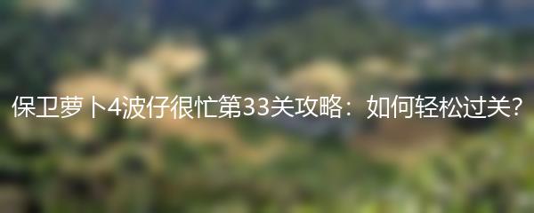 保卫萝卜4是一款非常火爆的塔防游戏,它以其独特的画风和刺激的关卡设计吸引了大量玩家的关注。其中第33关“波仔很忙”经常让玩家们感到非常困扰。下面,小编就为大家分享一些攻略技巧,帮助大家轻松过关。