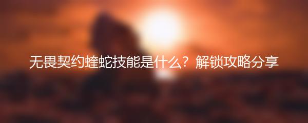 《无畏契约》是一款备受玩家喜爱的角色扮演游戏,其中的蝰蛇技能是游戏中非常重要的一部分。你知道蝰蛇技能是什么吗?想要解锁这个强大的技能又该怎么做呢?下面就为大家详细介绍。