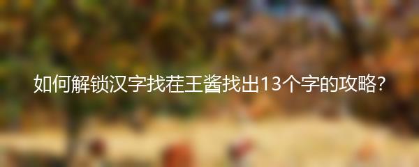 汉字找茬王酱是一款非常受欢迎的游戏,但是有些关卡真的很难,特别是那个需要找出13个字的关卡。那么,该如何解锁汉字找茬王酱找出13个字的攻略呢?下面就为大家详细介绍: