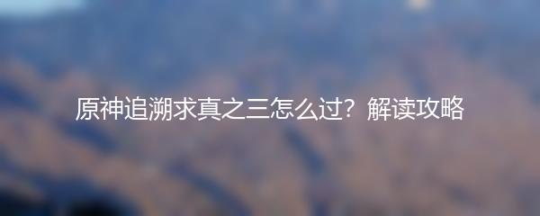 以上就是小编为大家带来的原神追溯求真之三怎么过的攻略。希望能帮助玩家们顺利完成任务并获得丰厚的奖励!