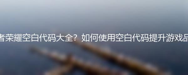 王者荣耀是一款热门的手机MOBA游戏,而空白代码则是玩家们常用的技巧之一。如何使用空白代码提升游戏品质?本篇攻略将为您详细介绍。