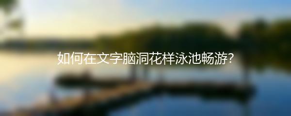 文字脑洞花样泳池是一种极富创意的游泳场所,在这里你可以尽情发挥你的想象力,在水中尽情畅游。那么,如何在文字脑洞花样泳池畅游呢?下面,为你提供以下攻略: