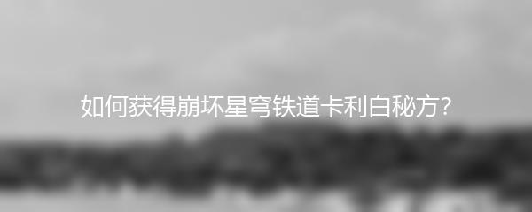 以上就是小编为大家带来的如何获得崩坏星穹铁道卡利白秘方的攻略,希望对大家有所帮助!祝愿大家在崩坏星穹的冒险中取得更好的成绩!