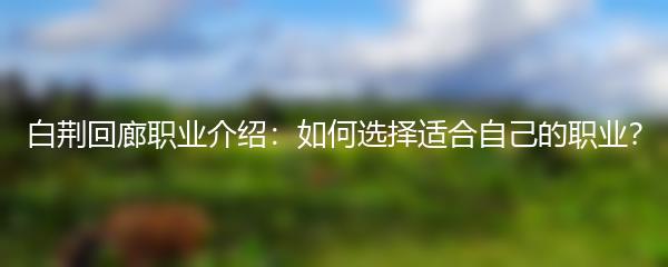 以上就是小编为大家带来的白荆回廊职业介绍:如何选择适合自己的职业?希望能对您有所帮助!