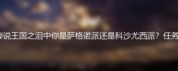以上就是小编为大家带来的《塞尔达传说王国之泪中你是萨格诺派还是科沙尤西派?任务怎么做?》的攻略。希望这些指导对你在游戏中的决策和任务完成有所帮助。玩得开心!