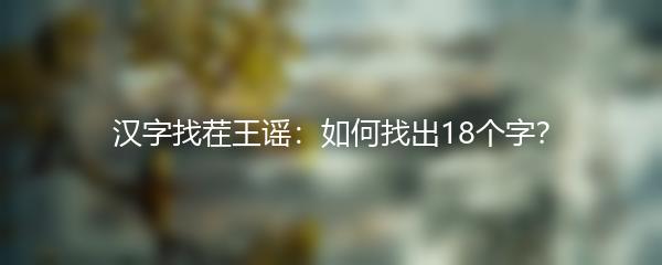 以上是关于如何找出18个字茬的汉字找茬王谣攻略。希望这些攻略能够帮助到您,在游戏中取得更好的成绩。