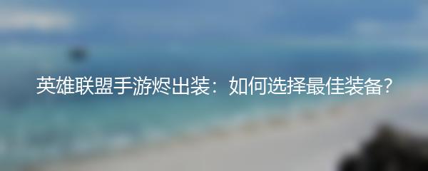 英雄联盟手游中的ADC英雄烬是一个非常强大的远程输出英雄。为了发挥烬的最大潜力,选择合适的出装是非常重要的。本文将为大家介绍如何选择最佳装备来提升烬的输出能力。