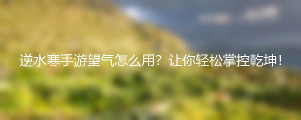 以上就是小编为大家带来的"逆水寒手游望气怎么用?让你轻松掌控乾坤!"的攻略。希望这份攻略对你的游戏过程有所帮助,祝你游戏愉快!