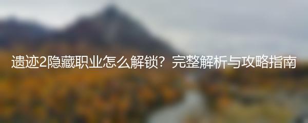 遗迹2是一款备受期待的角色扮演游戏,隐藏职业成为玩家们争相解锁的目标之一。本文将为大家详细介绍遗迹2隐藏职业的解锁方法和攻略指南。