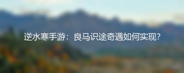 逆水寒手游是一款以古代江湖为背景的多人在线角色扮演游戏,玩家可以在游戏中体验江湖风云、刀光剑影的冒险。其中,良马识途奇遇是游戏中的一项重要玩法,下面为大家分享一些关于良马识途奇遇的攻略。