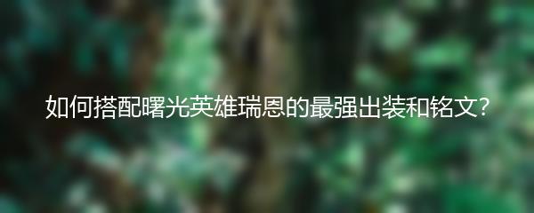 以上就是小编为大家带来的如何搭配曙光英雄瑞恩的最强出装和铭文。希望对喜爱瑞恩的玩家们有所帮助,让你在游戏中能够更加出色地发挥瑞恩的实力。
