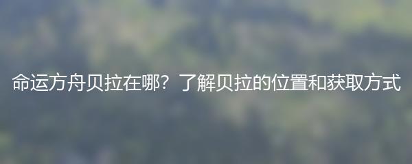 命运方舟是一款备受玩家喜爱的游戏,其中贝拉是一位重要的角色。想要了解贝拉在哪吗?本篇攻略将为你介绍贝拉的位置和获取方式。