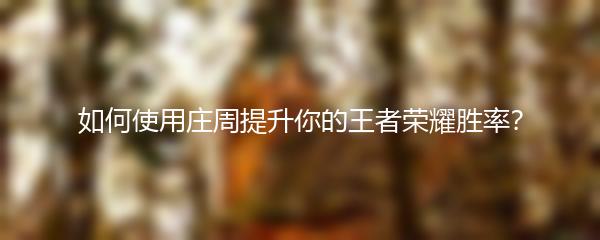 以上就是小编为大家带来的如何使用庄周提升你的王者荣耀胜率的攻略。希望这些技巧和建议能帮助大家在游戏中取得更好的成绩!