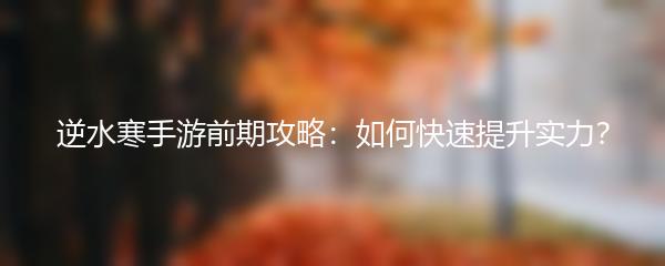 逆水寒手游是一款受欢迎的沙盒武侠游戏,想要在游戏中取得优势,快速提升自己的实力是非常重要的。下面将为大家分享逆水寒前期攻略,帮助大家更好地开始游戏。