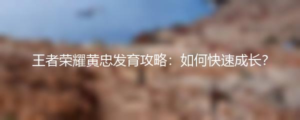 王者荣耀作为一款热门游戏,黄忠作为一名强力射手,如何在游戏中快速发育呢?本攻略将为您详细介绍。