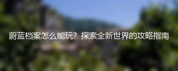 蔚蓝档案,作为一款热门的冒险游戏,吸引了无数玩家加入其中。那么,怎么能玩蔚蓝档案呢?下面是一份详细的攻略指南,帮助你更好地探索这个全新的世界。