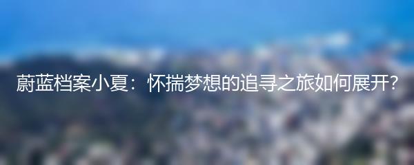 蔚蓝档案小夏是一部以冒险和悬疑为主题的热门电视剧。它讲述了小夏作为一名冒险家,怀揣着对未知世界的好奇心和梦想,展开了一段惊险刺激的旅程。