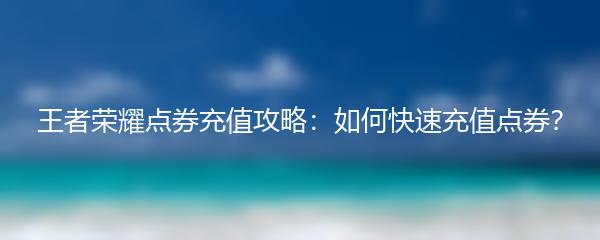王者荣耀作为一款非常火爆的手机游戏,点券是游戏中的一种重要充值货币,那么如何快速充值点券呢?下面就为大家分享一些王者荣耀点券充值的攻略。
