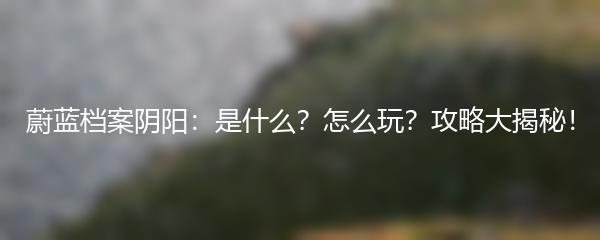 以下是一些游戏攻略和技巧,帮助玩家更好地玩转蔚蓝档案阴阳: